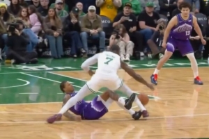 GIF-杰倫-布朗遭飛鏟,沒有被吹犯規