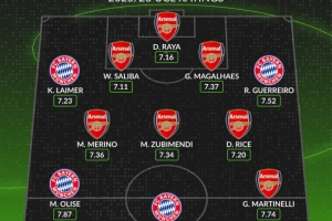 體育資訊11月27日訊 拜仁將在本輪歐冠客戰阿森納,whoscored也列出了兩隊本賽季歐冠評分合體最佳陣,阿森納7將在列。