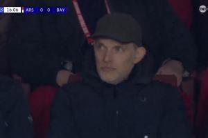 體育資訊11月27日訊 阿森納vs拜仁第17分鐘,轉播鏡頭給到看臺,英格蘭主帥圖赫爾在現場。
