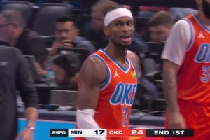 體育資訊11月27日訊 NBA杯小組賽,雷霆首節24-17領先森林狼。