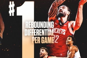火箭目前場均凈勝對手11.6個籃板,聯盟第一。場均進攻籃板數為16.2個。