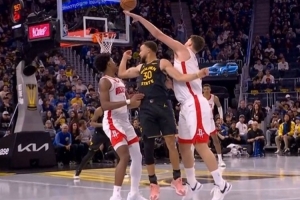 GIF-庫里不看人腦后分球,理查德后仰壓哨中投!
