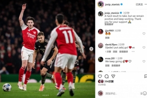 斯坦尼西奇社媒曬出比賽照片,配文:“這是一個難以接受的結(jié)果,但我們依然保持積極的態(tài)度,繼續(xù)努力。感謝大家的支持。”