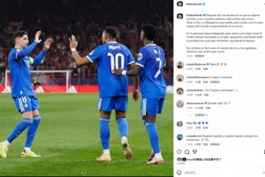 巴爾韋德也在社媒曬出與姆巴佩、維尼修斯慶祝合影,配文寫道:“經過一周的風波,我們比以往任何時候都更加團結。擁有維尼修斯和姆巴佩是我們的幸運,但能夠擁有一支全力以赴的世界最佳球隊更是我們的榮幸。就我個人而言,我正在努力恢復到最佳狀態。主教練一直在我身邊支持我,盡一切可能幫助我繼續成長并為球隊做出貢獻。雖然并不總是一帆風順,但我們教練組和球員們比以往任何時候都更加團結。”