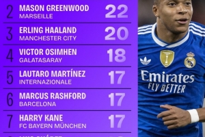 體育資訊11月27日訊 數(shù)據(jù)網(wǎng)站Squawka盤點(diǎn)了本賽季歐冠射門次數(shù)榜,其中姆巴佩居首,具體如下: