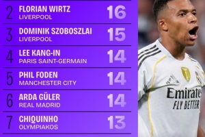 體育資訊11月27日訊 本賽季歐冠5輪戰(zhàn)罷,數(shù)據(jù)網(wǎng)站Squawka盤點(diǎn)了本賽季歐冠創(chuàng)造機(jī)會(huì)榜,具體如下: