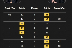 龍澤煌與路易·希斯科特各打出三桿50+,并鏖戰(zhàn)至決勝局,決勝局中龍澤煌頂住希斯科特的準(zhǔn)度攻勢(shì),清至粉球完成逆轉(zhuǎn),最終6-5戰(zhàn)勝希斯科特,晉級(jí)英錦賽正賽!