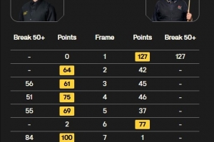 諾鵬·桑卡姆打出單桿127分,龐俊旭打出56、51、55、84分共四桿50+,最終龐俊旭以6-2的比分戰勝諾鵬·桑卡姆,晉級英錦賽正賽。