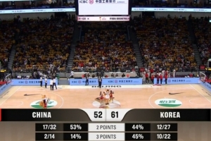 體育資訊11月28日訊 男籃世亞預階段一,中國男籃三節52-61落后韓國男籃。