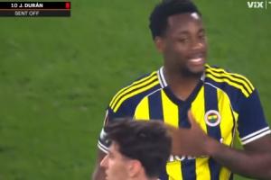 體育資訊11月28日訊 歐聯杯聯賽階段第5輪,費內巴切1-1戰平費倫茨瓦羅斯,費內巴切前鋒杜蘭在補時階段頭頂對手,被裁判紅牌罰下。