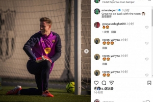長(zhǎng)期因傷缺席的巴薩門將特爾施特根已經(jīng)回歸訓(xùn)練場(chǎng),朝著復(fù)出邁出堅(jiān)實(shí)一步,他在社交媒體上曬出訓(xùn)練照片,配文:“很高興回歸球隊(duì)。”
