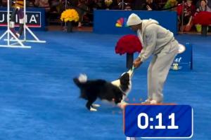 比賽中,馬克西與兩只狗狗的配合不太順暢,逗樂了現場的觀眾朋友們。