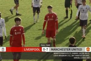 體育資訊11月29日訊 在剛剛結束的一場英超U18聯賽中,曼聯U18以7-0大勝利物浦U18。