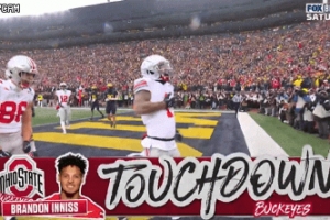 體育資訊11月30日訊 今日俄亥俄州立大學橄欖球隊外接手布蘭登·伊尼斯在對陣密歇根大學的比賽中完成達陣。