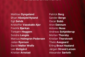 中前場:阿恩斯塔德(奧胡斯)、帕特里克-伯格(博德閃耀)、桑德-博格(富勒姆)、鮑勃(曼城)、冬納姆(圖盧茲)、努薩(萊比錫)、謝爾德魯普(本菲卡)、托斯比(熱那亞)、托爾斯特韋特(薩索洛)、阿斯高(流浪者)、哈蘭德(曼城)、拉爾森(狼隊(duì))、瑟爾洛特(馬競)