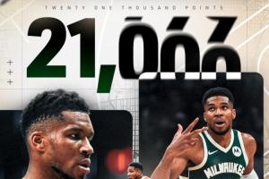 字母哥(30歲零358天)是NBA歷史拿到21000分第六年輕的球員,前五是詹姆斯、張伯倫、科比、杜蘭特和喬丹。