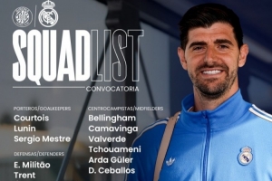 體育資訊11月30日訊 北京時間12月1日凌晨4:00,2025-26賽季西甲聯賽第14輪,皇馬將客戰赫羅納。賽前,皇馬官方公布球隊大名單,庫爾圖瓦、呂迪格和馬斯坦托諾回歸,勞爾·阿森西奧、赫伊森、卡瓦哈爾和阿拉巴缺席。