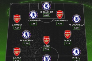 體育資訊11月30日訊 本輪英超焦點戰阿森納對陣切爾西即將打響,數據網站Whoscored也盤點了本賽季英超兩隊隊員場均評分最高陣,具體如下: