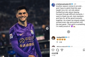 體育資訊12月1日訊 2025中超聯賽已落下帷幕,最終天津津門虎排在聯賽第6位。津門虎外援薩爾瓦多在社媒發文,對賽季進行總結。