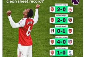英超官方推特寫道:“阿森納已經連續7場比賽保持了零封,他們上一次連續8場零封對手還要追溯到1903年。”