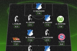 中場:克里斯托弗·特里梅爾(柏林聯,7.19分)、沃特·伯格(霍芬海姆,9.10分)、約翰·曼贊比(弗賴堡,8.53分)、路易斯·迪亞斯(拜仁,8.60分)
