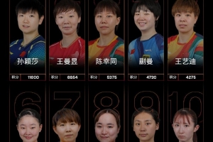 女子單打,中國隊球員孫穎莎、王曼昱、陳幸同、蒯曼、王藝迪位列前五,陳熠位列第九。