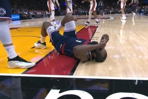 上半場一次進攻中,哈登突破后摔倒,躺在地上表情痛苦,裁判沒有吹罰,后續(xù)是祖巴茨在籃下被犯規(guī)。