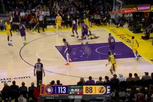 詹姆斯6分51秒得分上雙