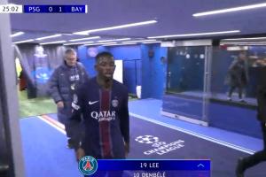 體育資訊11月05日訊 歐冠聯賽階段第4輪,巴黎對陣拜仁。25分鐘,登貝萊傷退,李剛仁替補出場。