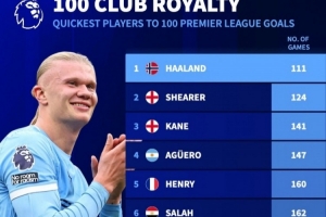 體育資訊12月3日訊 曼城在本輪英超對陣富勒姆,哈蘭德首開紀錄達成英超百球里程碑。《轉會市場》也統計了英超歷史最快達成百球場次榜。