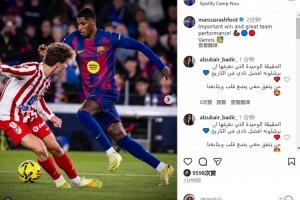 拉什福德社媒曬出比賽照片,并寫道:“重要的勝利,出色的團隊表現。加油!”