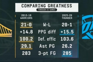 勇士當時命中283記三分,本賽季雷霆投進285記