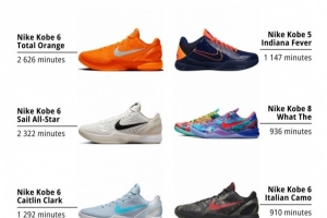排名第一的是Kobe 6 Protro “Total Orange”配色,第二的是Kobe 6 Protro “ASG”,第三則是凱特琳·克拉克的PE配色Kobe 6 Protro。