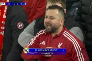 登場時,阿諾德遭到了紅軍球迷的“熱烈歡迎”:安菲爾德噓聲四起,鏡頭給到的一位球迷向他手指著胸前的利物浦隊(duì)徽,口中念念有詞,隨后這位球迷還低頭親吻了隊(duì)徽。