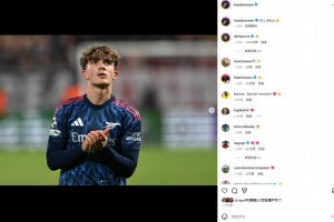 本場比賽15歲道曼替補登場,成為歐冠歷史出場最年輕球員,賽后他也在社媒曬出本場照片,配文寫道:“歐冠首秀!”