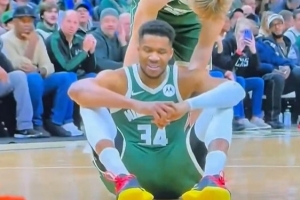 ??不妙!字母哥無對抗倒地+撫摸右小腿 表情不是很好