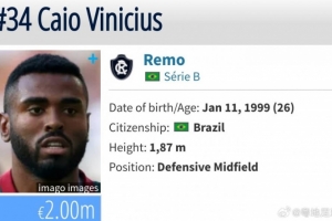 卡約現(xiàn)年26歲,在場上司職后腰,效力于巴乙瑞模貝雷,上賽季共出戰(zhàn)了28場巴乙聯(lián)賽,打進5球助攻2次,目前德轉(zhuǎn)身價為200萬歐。