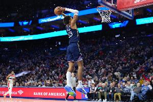 76人雙向前鋒巴洛上半場出戰17分鐘,5中3,三分1中0砍下6分9籃板2助攻2蓋帽,正負值+22。