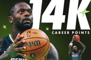 森林狼官方統計,蘭德爾生涯總得分突破14000,排在現役第34位。