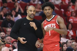 周三晚上,湯普森表示他想把注意力轉移到抓下防守籃板上,這樣他就能發起一些在第三節扭轉局勢的轉換進攻。憑借驚人的天賦,他能夠通過籃板球、轉換進攻得分、一對一防守,或是當對手包夾火箭的全明星中鋒時,憑借與申京心有靈犀的默契空切至扣籃點,來影響比賽。