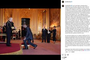 我無法用言語形容今天對我來說是多么特別的一天,一個在東倫敦出生的男孩,從國王手中接過騎士爵位勛章。