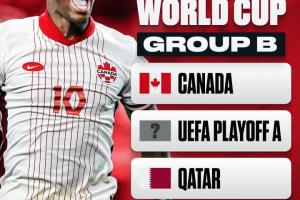 世界杯B組為:加拿大、歐洲區附加賽球隊A、卡塔爾、瑞士