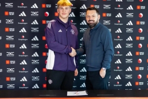 據曼徹斯特晚報消息,哈迪與曼聯簽署的是獎學金合同,并在卡靈頓訓練基地與青訓運營主管史蒂夫·海厄姆合影。
