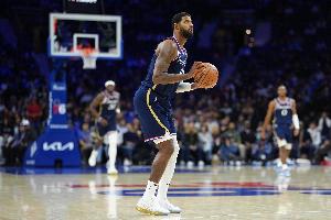 上半場比賽,喬治進攻端里突外投狀態在線,他出戰12分鐘,6中4,三分2中1,罰球2中2拿到11分2助攻,正負值+9。
