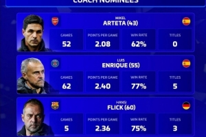體育資訊12月6日訊 德國轉(zhuǎn)會市場列出了2025年最佳教練候選名單,阿爾特塔、恩里克、弗里克、孔帕尼在列。