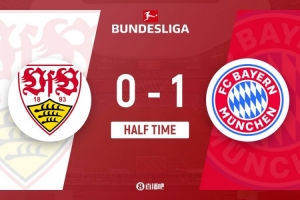 傷停補時8分鐘。上半場比賽結束,拜仁1-0斯圖加特。