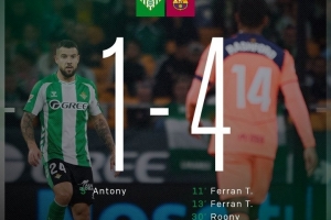 體育資訊12月7日訊 本輪西甲焦點(diǎn)戰(zhàn),巴薩上半場(chǎng)4-1反超貝蒂斯,數(shù)據(jù)統(tǒng)計(jì)顯示西甲聯(lián)賽歷史僅有4支客隊(duì)在皇家貝蒂斯主場(chǎng)上半場(chǎng)進(jìn)球數(shù)達(dá)到4+:
