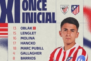 馬競首發:13-奧布拉克、15-朗格萊、16-莫利納、17-漢茨科、18-普比爾、4-加拉格爾、8-巴勃羅·巴里奧斯、20-朱利亞諾·西蒙尼、23-尼古拉斯·岡薩雷斯、11-阿爾馬達、19-阿爾瓦雷斯