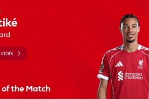 據賽后英超官方消息,利物浦前鋒埃基蒂克被評選為此役最佳球員。