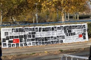 球迷在皇馬訓(xùn)練場(chǎng)外懸掛橫幅,表達(dá)對(duì)居萊爾的支持: